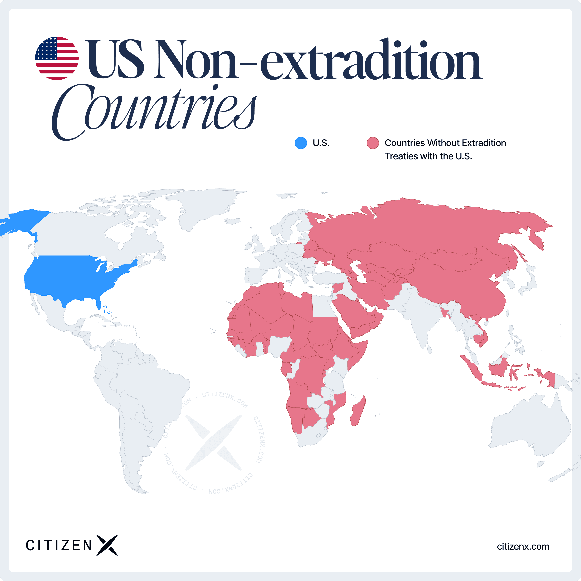For complete reference, these nations currently maintain non-extradition status with various major powers: